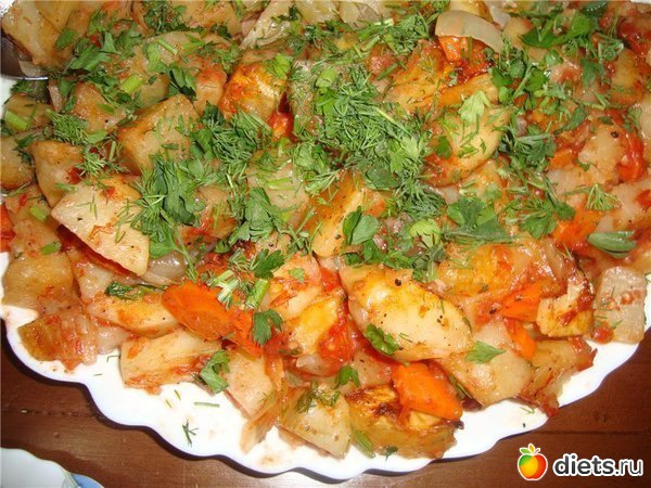 Высыпать картошку в блюдо и посыпать зеленью. Красивое, аппетитное, невероятно вкусное блюдо готово!
