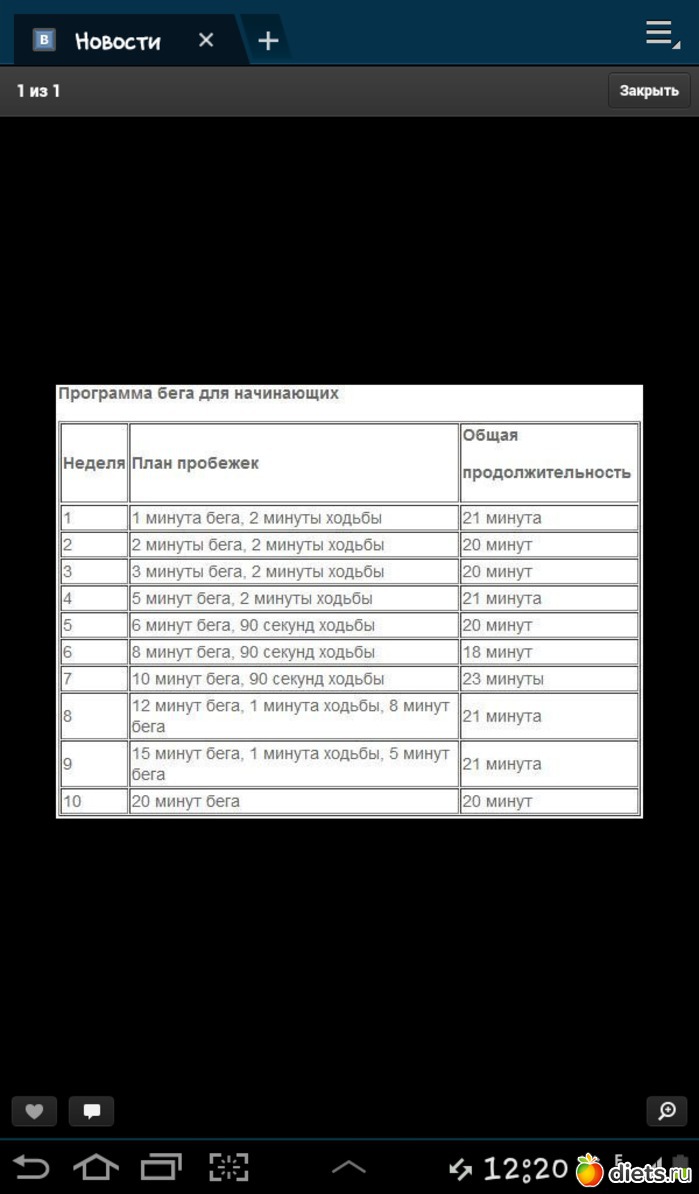 Но, зато, я сегодня умничка : потанцевала на занятии со всеми и колени норм себя вели, покрутила обруч и даже начала свой пробежечный сезон:-) уррра:-):-):-) планирую начинать примерно по схеме картинки, только добавлять не раз в неделю, а каждый день по 20-30 секунд.