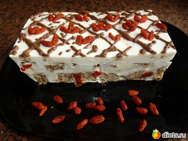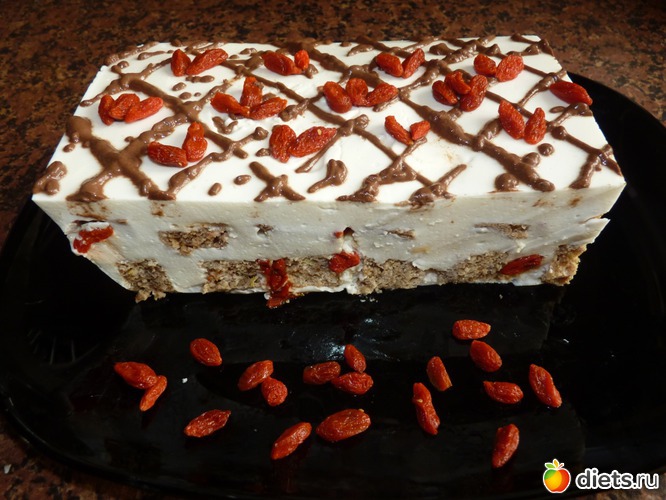 между бисквитинками можно положить ягоды годжи заливаем наш бисквит творожным суфле и убираем в холодильник, часа на 4.