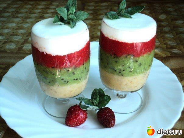 1-банан, 2-киви, 3-клубника, 4-мороженое. Украсьте мятой. Читать полностью