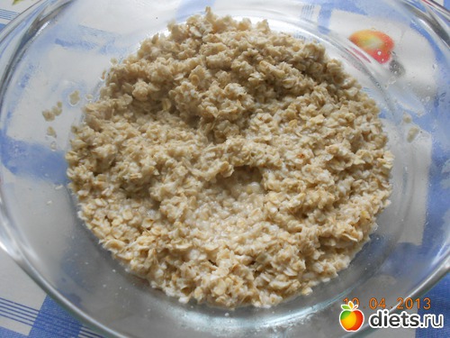 1. Заливаем овсяные хлопья кипятком, перемешиваем, даем распариться.