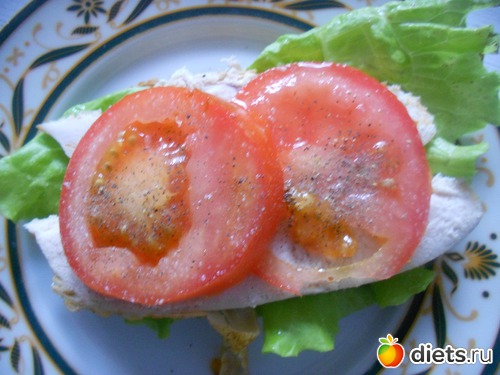 Ужин - зерновой гречишный тост с куриной грудкой, салатом и помидором: