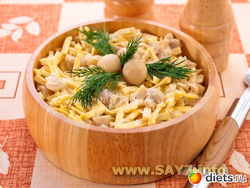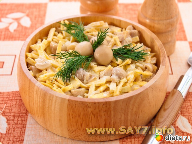Diets.ru Салат с грибами, блинчиками и луком