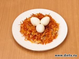 Картофель натереть на терке для корейской моркови, либо нарезать очень тонкой соломкой.