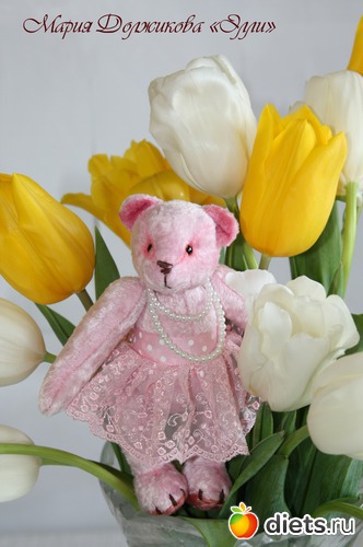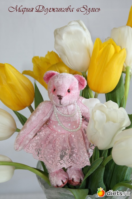 Это очаровательная розовая мишка родилась еще в холодном феврале, чтоб приносить в дом тепло и весну.
