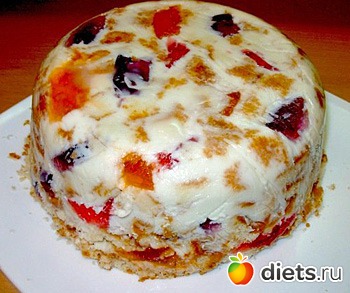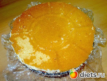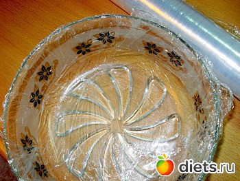 ПРИМЕЧАНИЕ. Салатник или миску можно не выстилать пленкой, а перед извлечением застывшего торта на 1-2 секунды окунуть в горячую воду.
