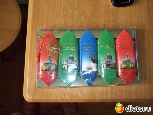 Вчера девочки забрали меня после работы, ради такого случая, я закрыла свой киоск по-раньше. В подарок Катя привезла нам вот таких питерских конфет,