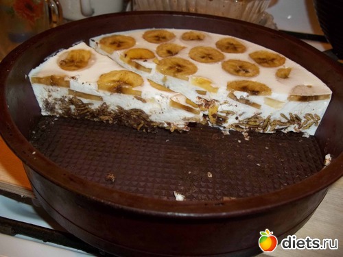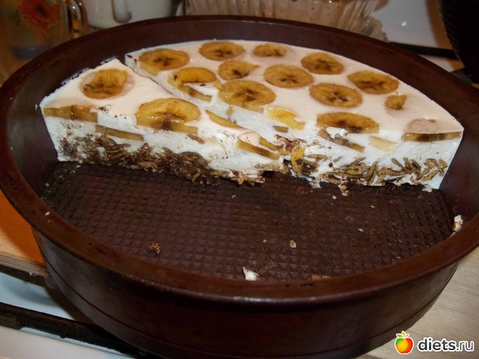 Ну а на десерт приготовила уже испытаный мной творожный торт, только в этот раз я его готовила с бананами.