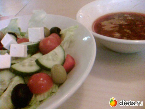 Обед - между двумя работами - постный борщ с грибами и греческий салат без заправки:
