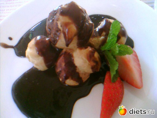 А на десерт - да-да, профитроли с чашечкой кофе:
