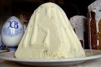 Через 12 часов слить сыворотку, отогнуть края марли, перевернуть пасочницу, снять марлю. Украсить на Ваше усмотрение.