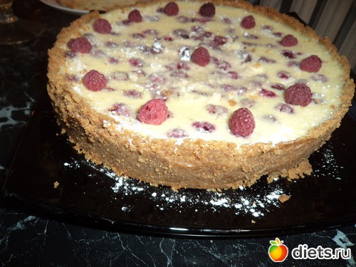 Достаем. Охлаждаем. Украшаем сахарной пудрой и малинкой