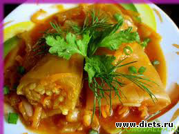 Положить в кастрюлю на капустные листья, добавить 1/2 стакана воды. Томатную пасту положить на голубцы, добавить подсоленное масло.