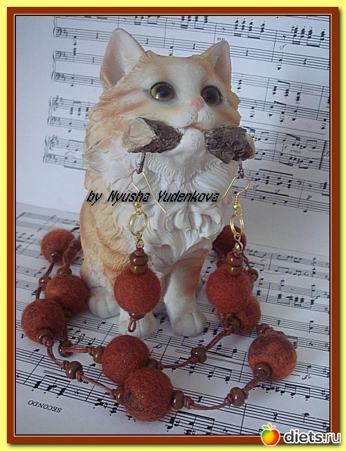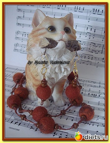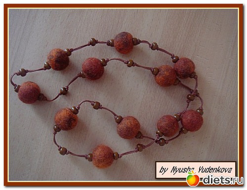 Вот такой наборчик, состоящий из бус и сережек, выполнен из шерсти мультиколор(коричневый-кирпичный-ярко оранжевый).