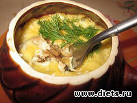 Посыпать сыром (крышечкой не накрывать). Поставить в духовку, запекать при температуре 180 градусов до золотистого цвета (около 30 минут).