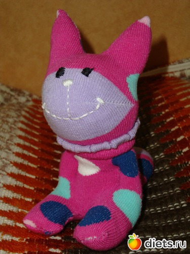 . Ну ничего. Следующий лучше получится. С ушками напартачила, бусинок у меня черных не оказалось, пришлось глаза вышивать черными нитками. Но дочке понравился. И это самое главное.