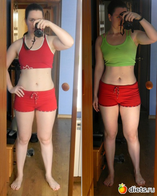 Просто рельеф и пропорции меняются за счет мышц, они же плотнее, чем жир.