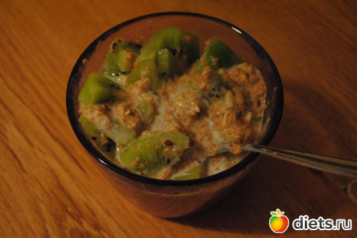 кефир 200+геркулес 10 +отруби 18+лен 5+киви 150 + кофе 3 сканчика )