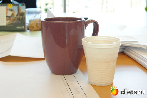 Вот такая у меня чашка и одноразовые стаканчики кофе выпиваю около 5 штук
