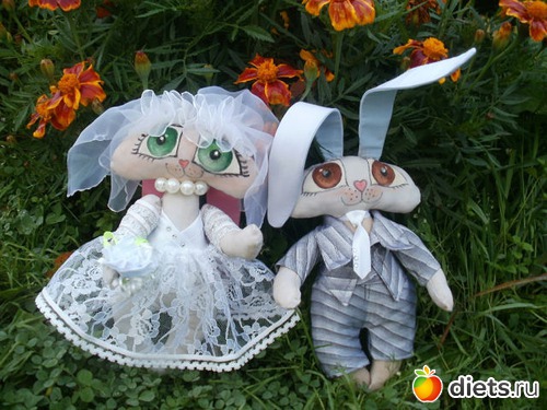 вот и воплощаю хоть таким способом свои фантазии.. но чтот я отошла не в ту степь.зачем грустить свадьба ведь!!!хоть и заячья.а что? зайцы тоже любят!)в общем эту парочку я сшила прошлым летом в