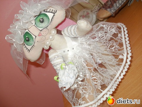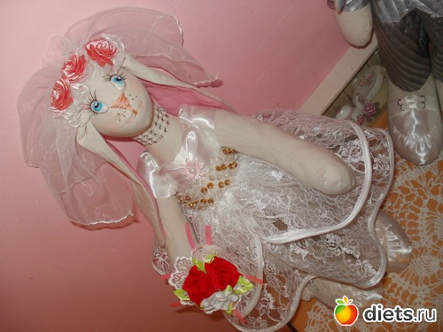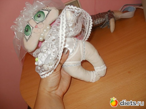 Игрушки нужно набивать туго, без заломов по швам, без целлюлита на ножках, без морщин на шейке. Утюжить. Что это за ушки помятые? Почему жених без рубашки животом светит?