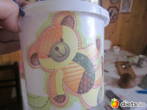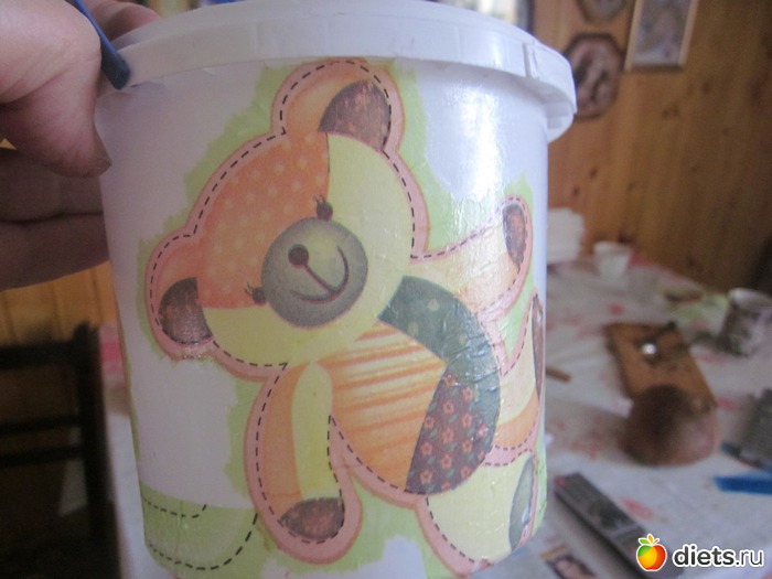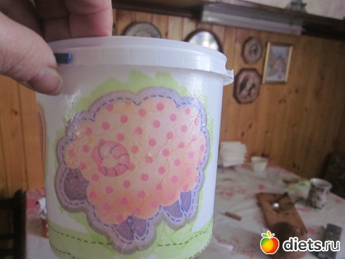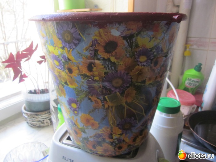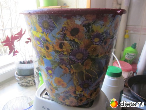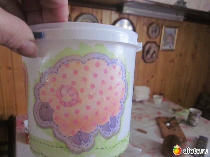 Может ошибаюсь, но вроде синий цветок называется "сон-трава", а после декупажа ведра просто не узнать!!!