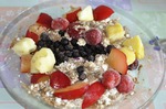 6. Фрукты любые и ягоды ( у меня здесь слива, ананас, черника, клубника, ежевика) –30-50 ккал.
