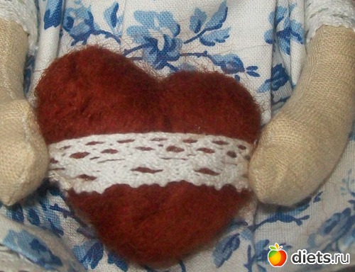 Работой я очень довольна и сделала гораздо быстрее, чем предыдущую... Рост у нее кстати от подола до макушки 28см, но ватные диски у меня большие и выглядывают еще см на 5, а может и больше...