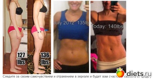 А за год до этого ела мень6е, бегала и худела ) но у меня и сотношение мышцы/жир было другое. До этого у меня было 9 месяцев силовых по 4 раза в неделю и мышцы так сказать продолдали работать.