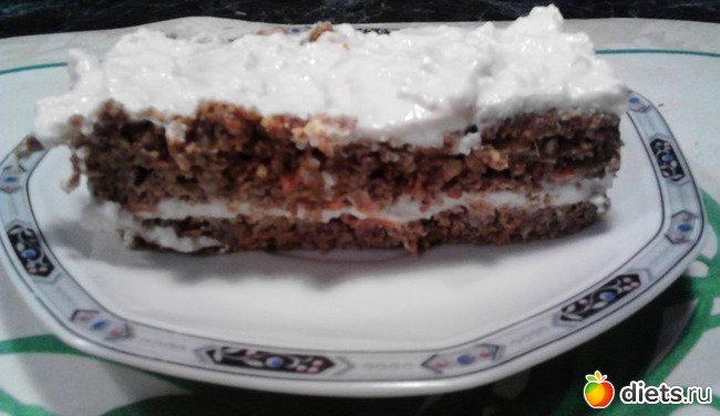 Единственное, что хочу добавить от себя - у меня чередование 1/1. Из-за моркови торт можно кушать только в БО дни, а значит надо растянуть его на 5 дней. Мне "помог" муж и съел одну порцию