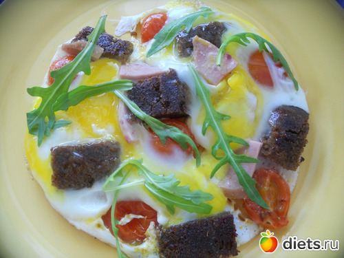 А ужинала уже дома, любимой яичницей с черными гренками и помидорами: