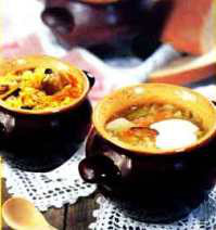 Получившееся в горшочках овощное рагу с бараниной залить сметаной и томить в духовке до готовности (чуть больше часа).