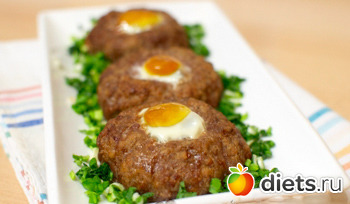 4. Далее ставим разогреваться духовку (не менее чем до 80 градусов). В это время формируем из приготовленного фарша своеобразные гнезда (делаем в них небольшие углубления), а затем выкладываем их на противень (или в любую другую удобную форму для запекания), обязательно смазанный растительным маслом. Отправляем гнезда в уже разогретую духовку до их практически полной готовности, примерно на 30 минут.