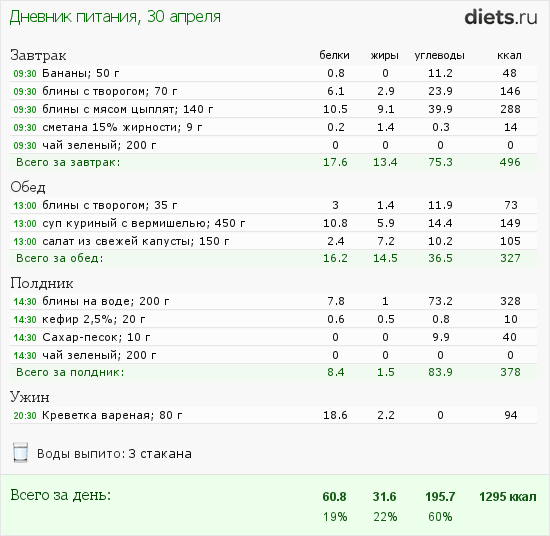 На завтрак лучше молочная кашка, но иногда и блинчики в самый раз, Обед: блины убрать, а курочку или рыбку добавить, фруктов вообще нет