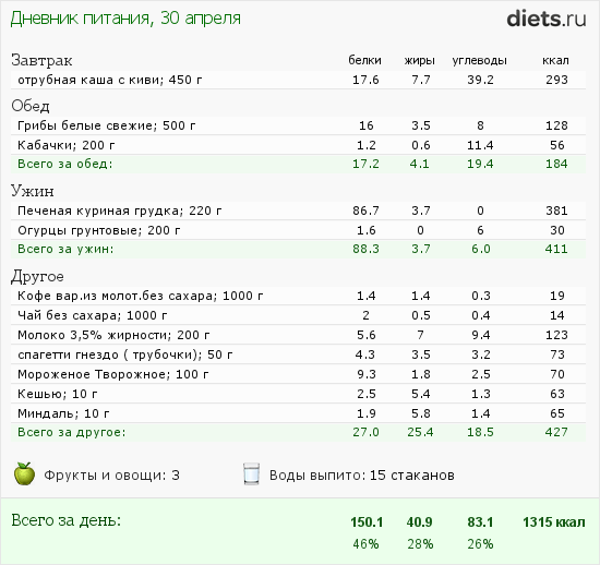 А количество калорий 1315 - очень хорошо!