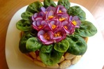 В корзинку из крекеров под фиалки можно спрятать самый банальный салат, но как необычно будет смотреться такой шедевр на столе! В данном рецепте, салату придает пикантный вкус сочетание копченой курочки с корейской морковкой.