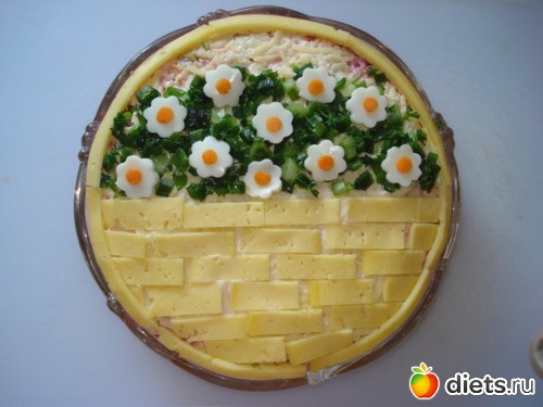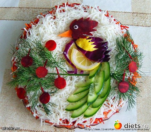 Красиво украсить салат совсем несложно и не займёт у Вас много времени. Достаточно всего лишь проявить фантазию или использовать готовые примеры оформления праздничных салатов, которые совсем несложно воплотить у себя на кухне.