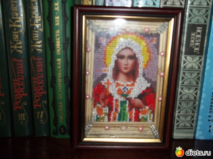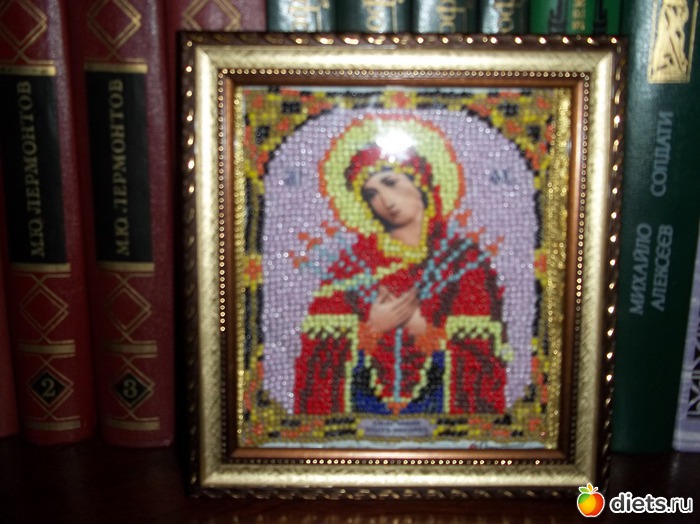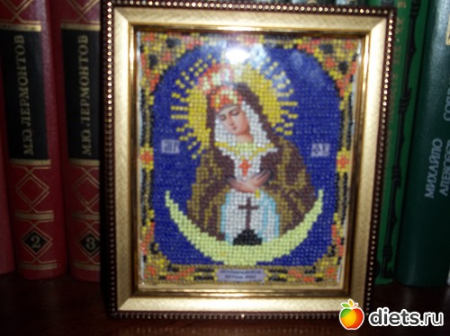 бисер, только не чешский, а китайский. Он не одинаковый, но при вышивке получается вид фрески.