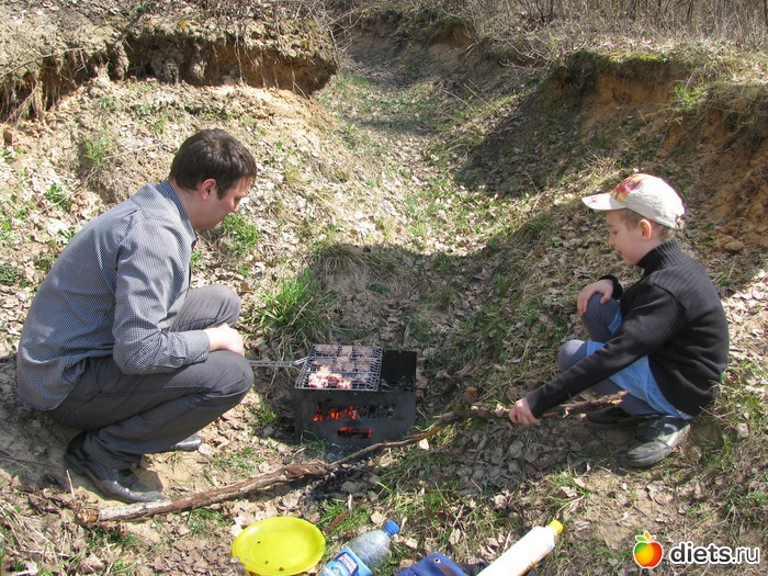 Позавчера мы с мужем и сынишкой ездили на природу на шашлыки!