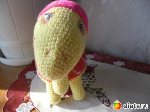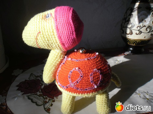 Не пугайтесь, это не глюки. Это всего лишь черепаха, которую связала моя доча. Видите, грустная какая, с верблюжьей тоской в глазах.