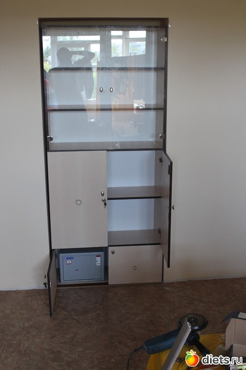 В результате привезли сервант, все хорошо, но мы еще с мужем сутки приводили сервант в порядок - убирали ножки (зачем они их ставят?), врезали сейф, отмывали спирторастворимый маркер с мебели (нет бы водорастворимым воспользоваться) и т.д. и вот он результат.