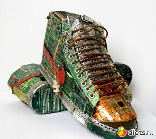 Каждый дизайнер по-своему понимает использование природных материалов в создании обуви, как например эта модель сделана из мальчишеской рогатки.