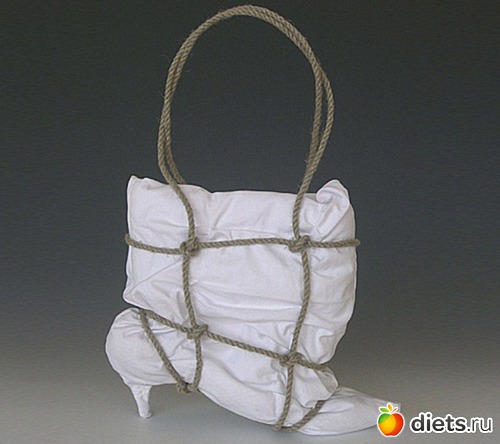 Каждый дизайнер по-своему понимает использование природных материалов в создании обуви, как например эта модель сделана из мальчишеской рогатки.