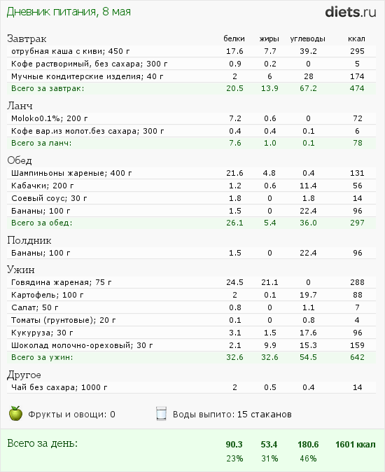 вообщем вот такое у меня меню получилось, думала что у меня сегодня получится белковый день но под вечер все переигралось и я даже на выпала из своей нормы