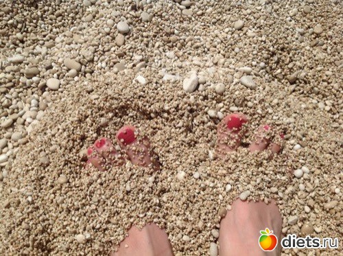 А песочек на пляже и не песочек даже, а меленькая-меленькая галька белоснежная:
