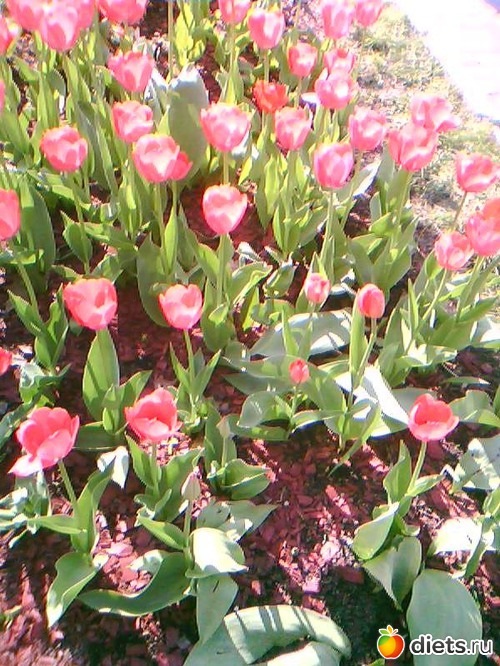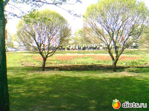 И, конечно, порадовали глаз моря и озера тюльпанов, вот они виднеются между деревьев: