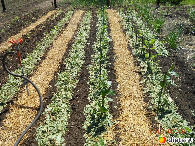Я дорожки замульчировала картон и сверху солома,а грядки травой,у речки накосили пижму,полынь и лебеду.