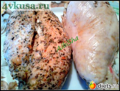 Привет! Девочки, сегодня приготовила курочку по ниже представленному рецепту - ОБАЛДЕННО!!! Впервые, куриная грудка доставила столько удовольствия при поедании! Рецепт взят с сайта 4 вкуса, автор Альбина Valk70. Как дать ссылку на её сайт - не умею...