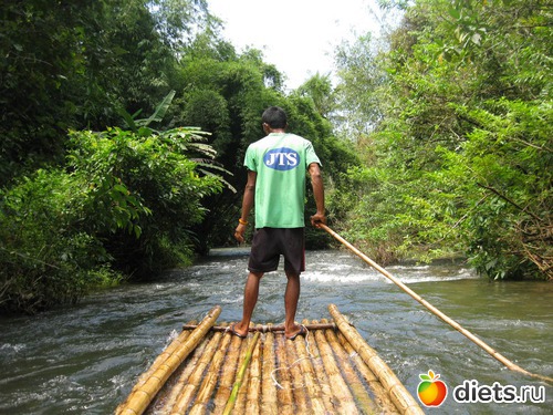 Далее - сплав на бамбуковых плотах по речушке в джунглях. Для тех кто никогда не баловался рафтингом немного стремно, для бывалых - ерунда.