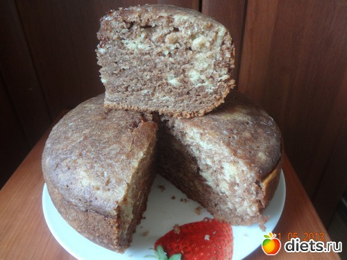 Нужно: маргарин 130 г, сахар 1,25 стакана, яйца 3 шт., мука 2 стакана, кефир - 1 стакан, какао-порошок 2 столовые ложки, сода 1 чайная ложка (погасить уксусом), маргарин 1 чайная ложка.
